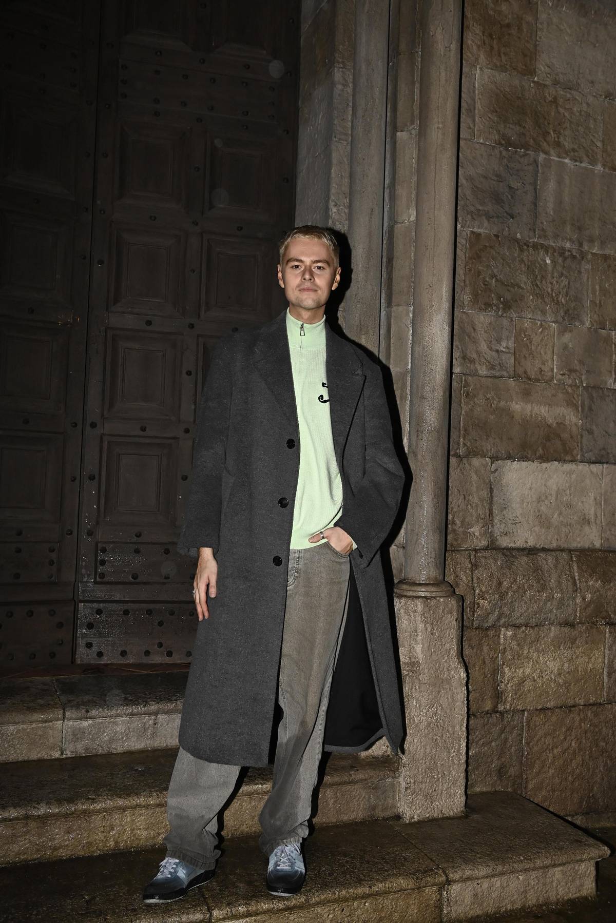 Ve vlněném saku se objevil mezi modely i herec Zdeněk Piškula.