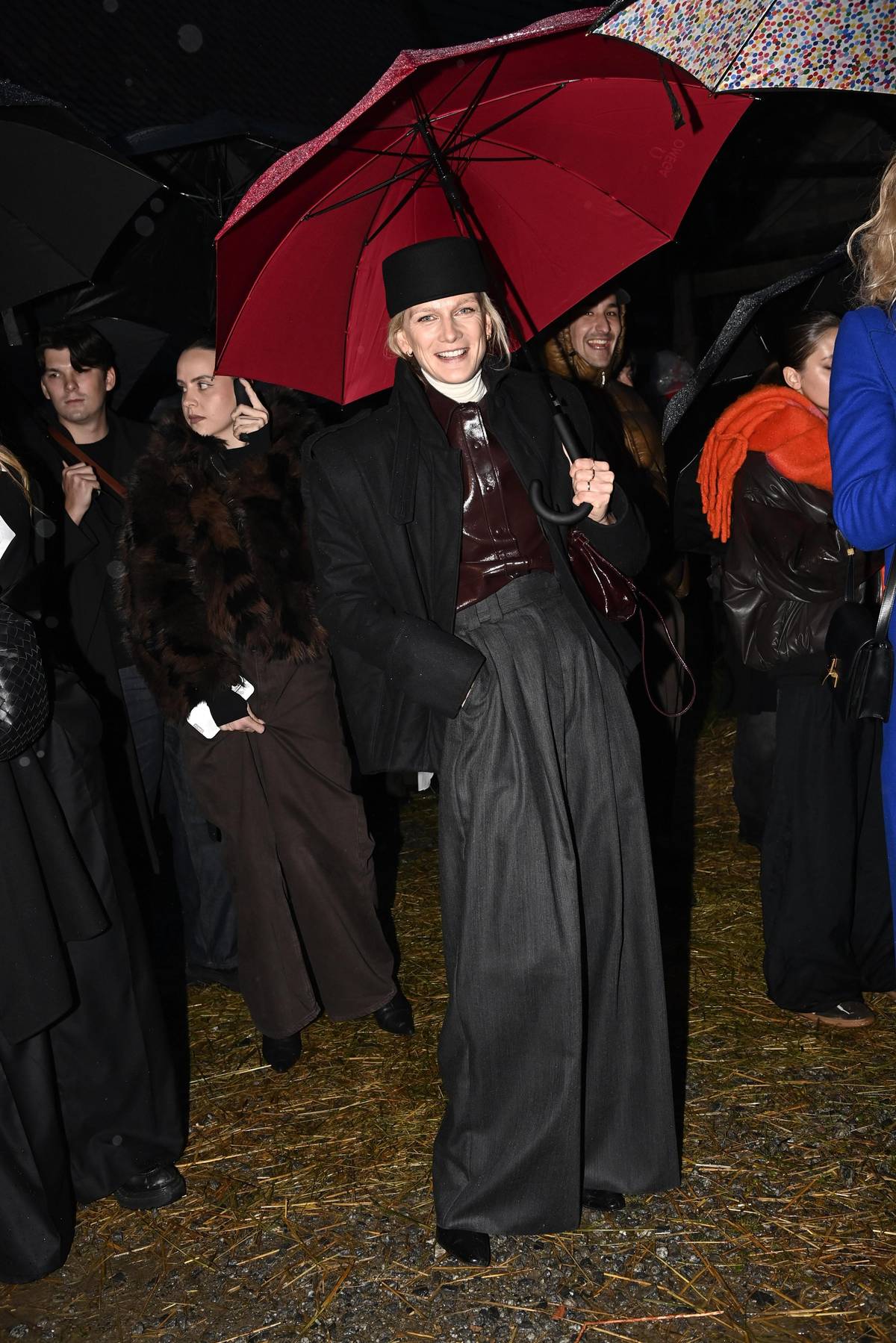 Herečka Zuzana Stivínová vyrazila na přehlídku v kabátu přímo od Jana Černého, který doplnila i jeho koženou kabelkou.