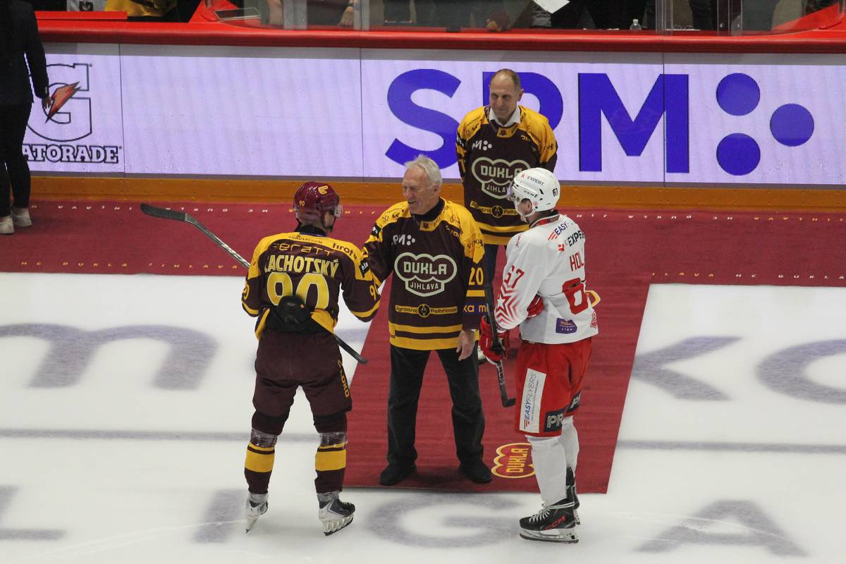 Jiří Holík při slavnostním buly v nové aréně před zápasem Dukly se Slávií