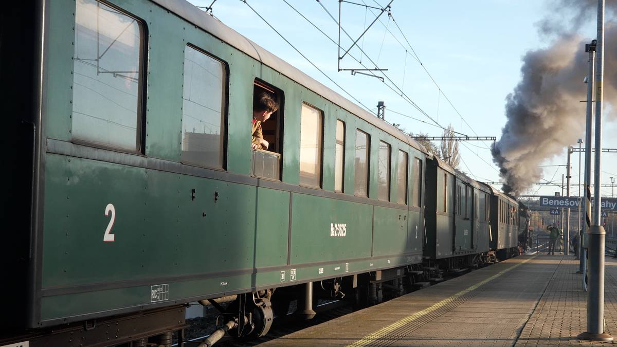 Jízda historického parního vlaku z Prahy do Českých Budějovic v rámci vzpomínkové akce Konečně doma!