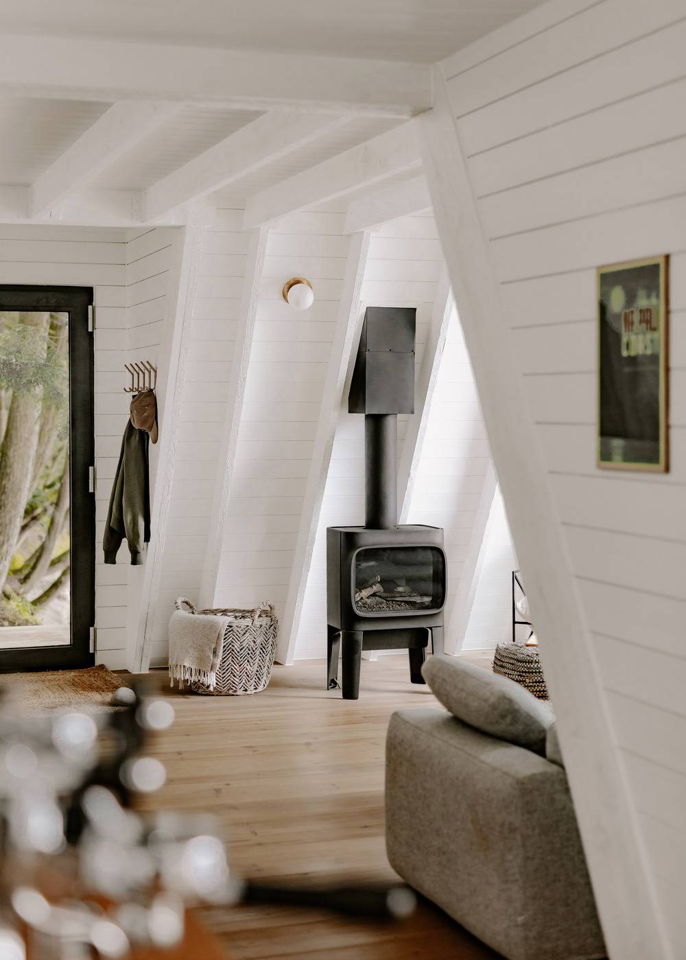 Bílý nátěr v kombinaci s černými prvky je spojujícím prvkem interiéru a exteriéru.