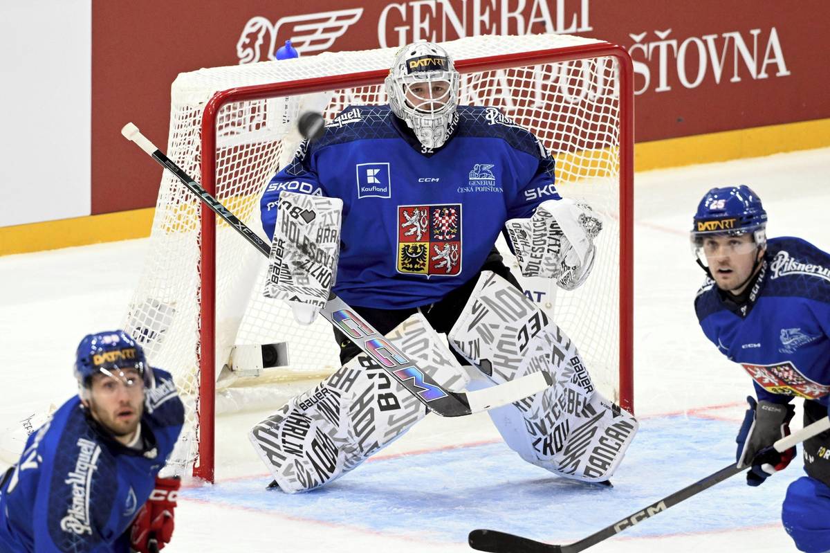 Brankář Josef Kořenář v duelu proti Švýcarsku