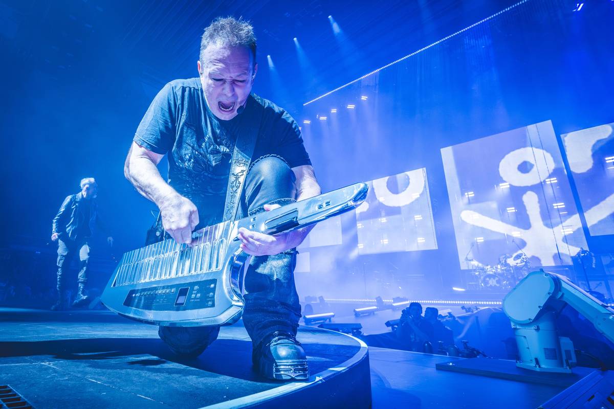 Michal Penk, první zpěvák Lucie, jako host koncertu. Vpravo Robert Kodym