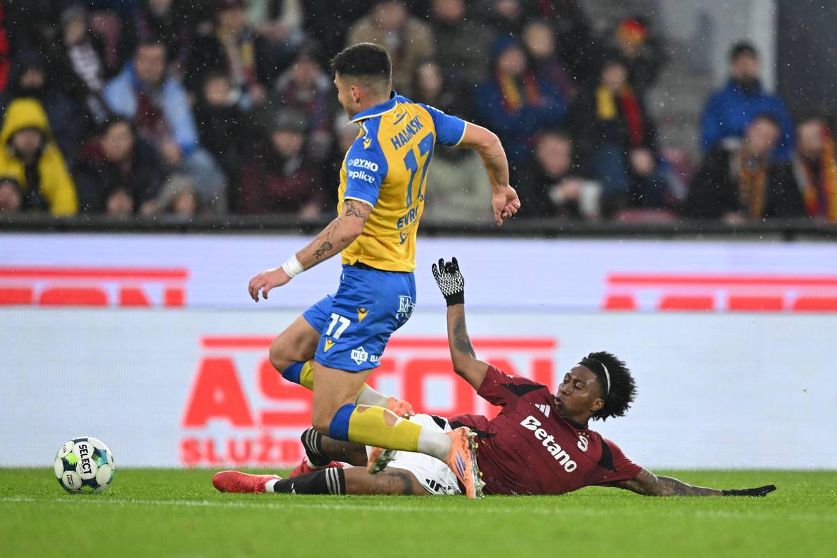 Teplický Denis Halinský v souboji s Angelem Peciadem
