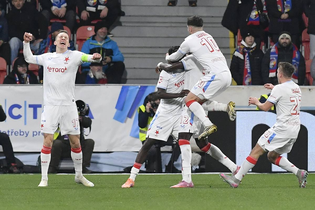 Slávisté se radují z branky.