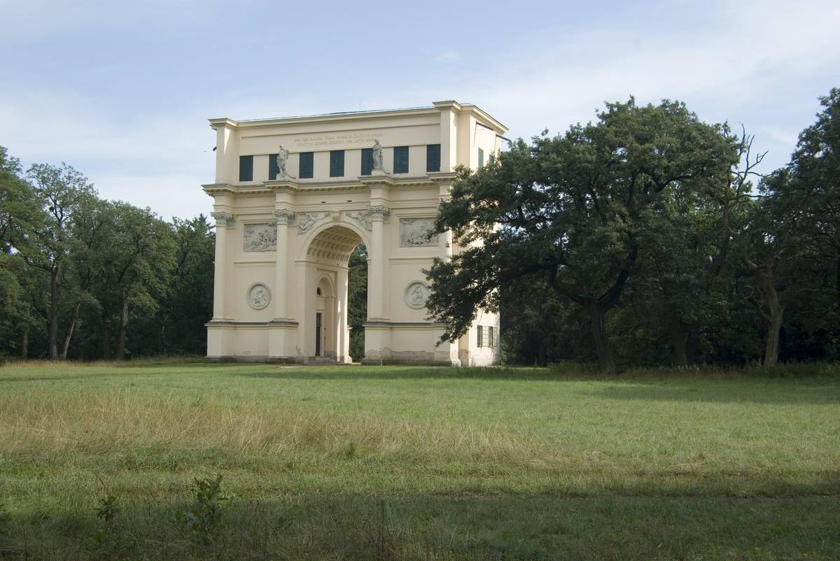 V krajině jsou rozmístěny drobné stavby – takzvané salety – různé kaple, vily či zámečky, kde se z hlediska stavebních stylů prolínají romantismus, klasicismus a empír. Na snímku stavba Rendez-vous, také zvaná Dianin chrám.