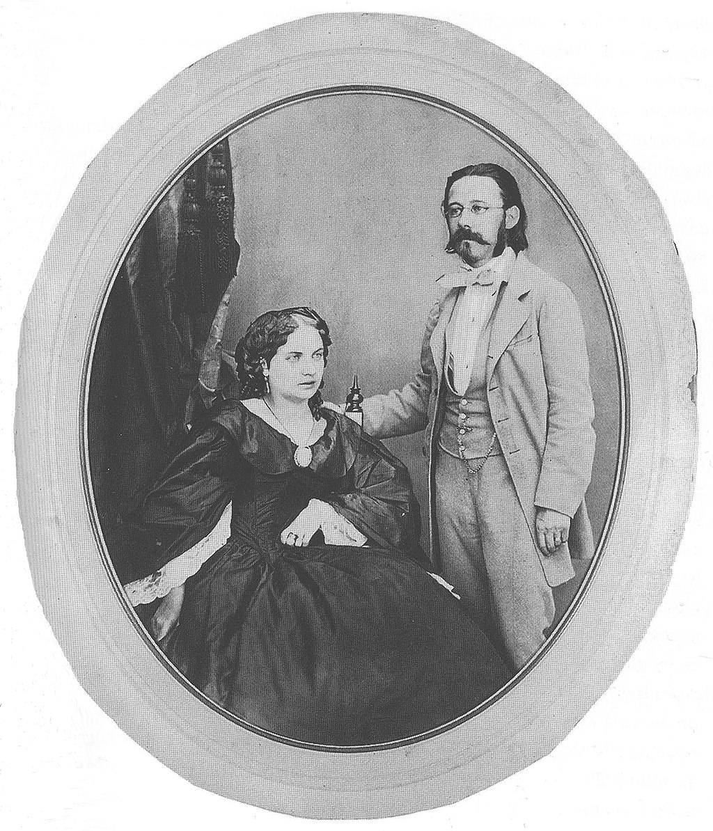 Bedřich Smetana se svoji druhou manželkou Bettinou Smetanovou na fotografii z roku 1860.