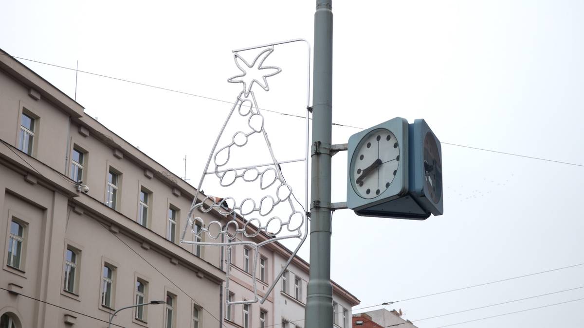 Vánoční osvětlení zdobí Seifertovu ulici při zastávce Viktora Žižkov.