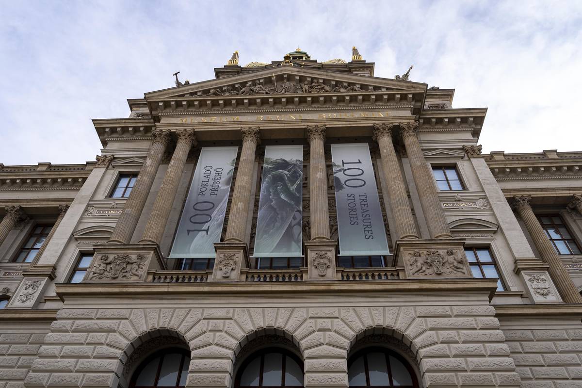 Na Národním muzeu na pražském Václavském náměstí visela do srpna v pravé části poutače ukrajinská vlajka, dnes už tam není.