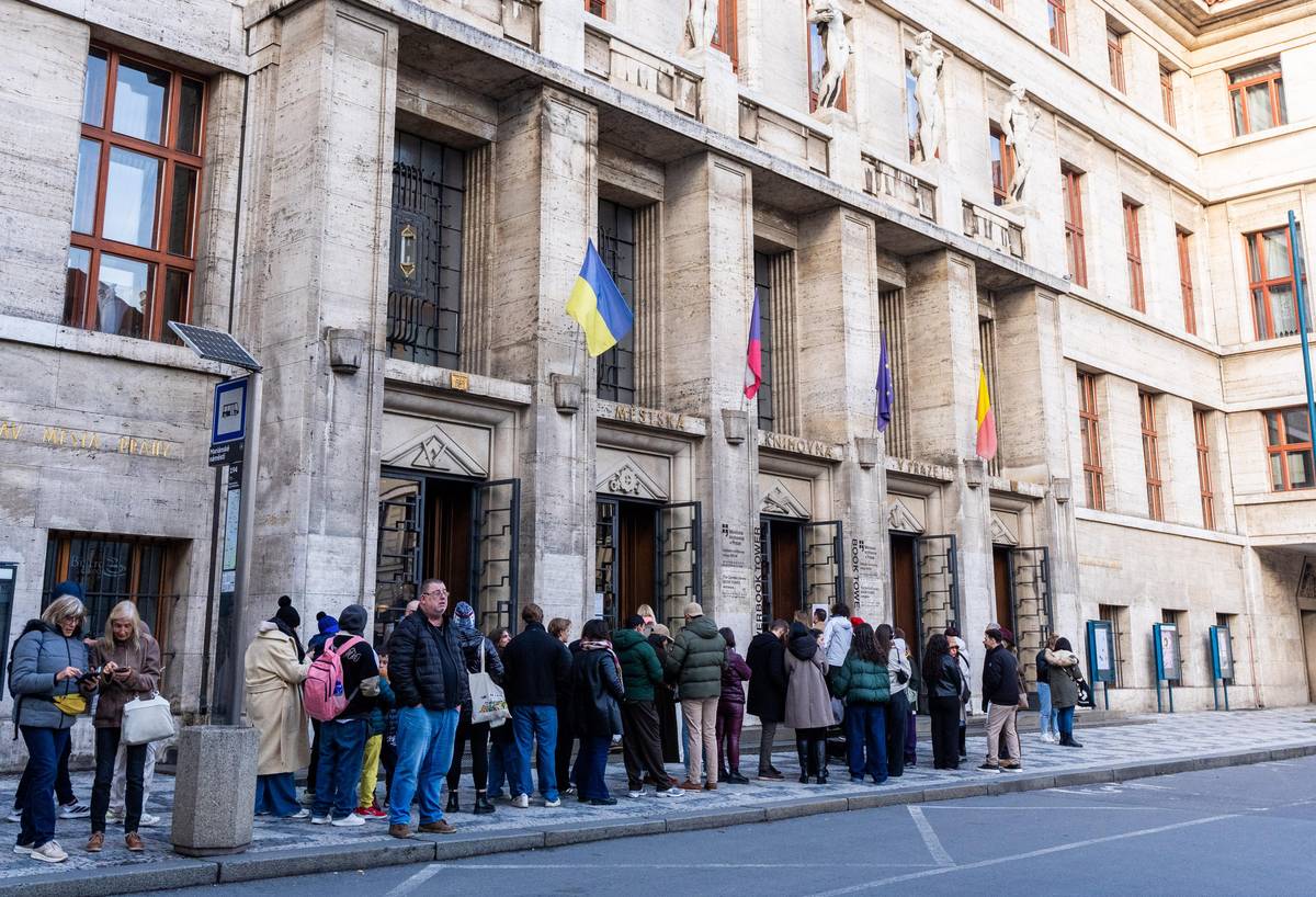 Ukrajinská vlajka je na pražské budově Klementina, kde sídlí Národní knihovna.