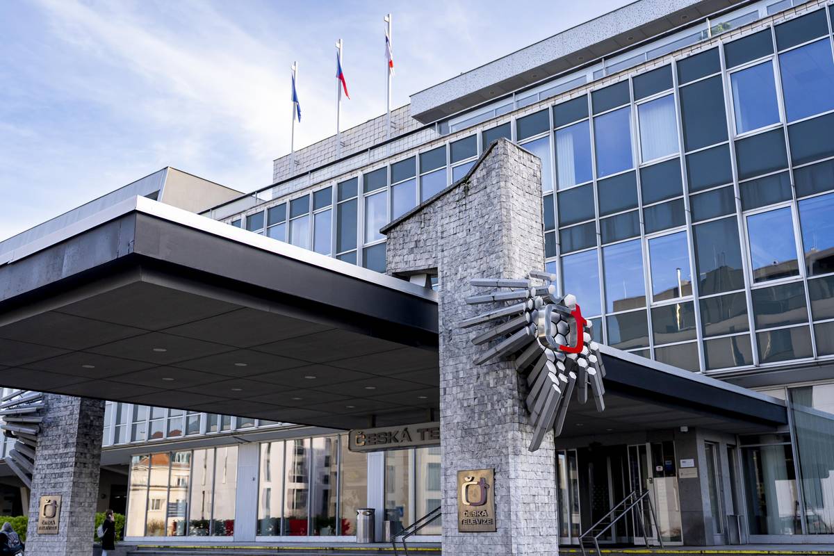 Nad pražské centrální budově České televize je pouze vlajka České republiky, Evropské unie a emblém ČT.