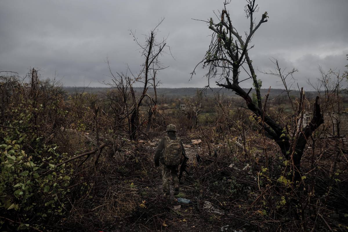 Voják 24. mechanizované brigády ukrajinských ozbrojených sil, poblíž města Časiv Jar v Doněcké oblasti, 25. října.