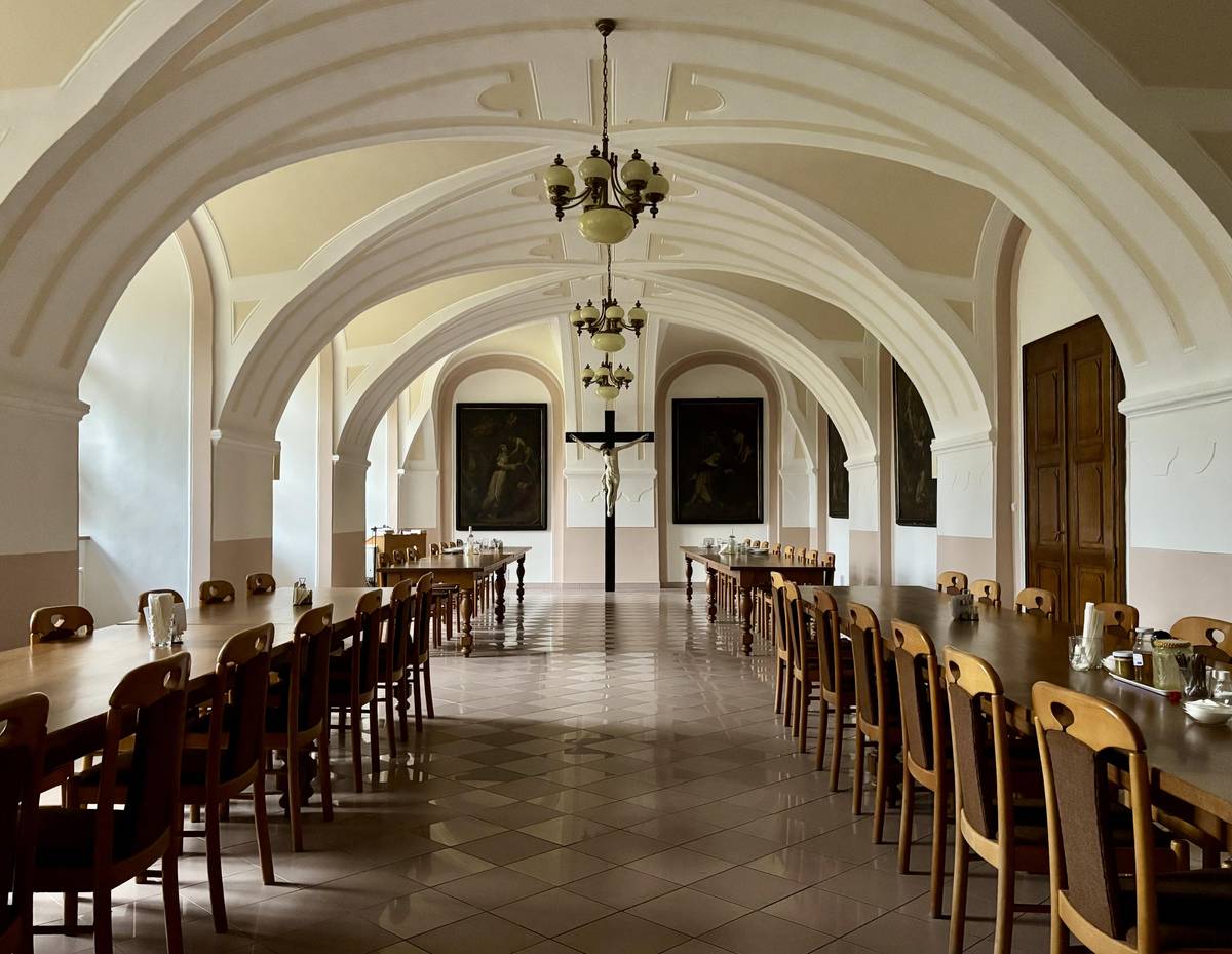 Barokní refektář, tedy jídelna. Obědy mívají dominkáni zpravidla společné.