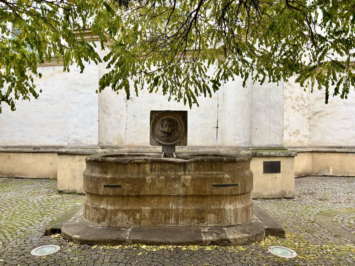 Detail na fontáně před kostelem.