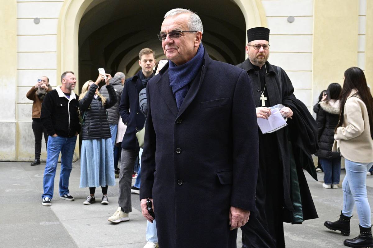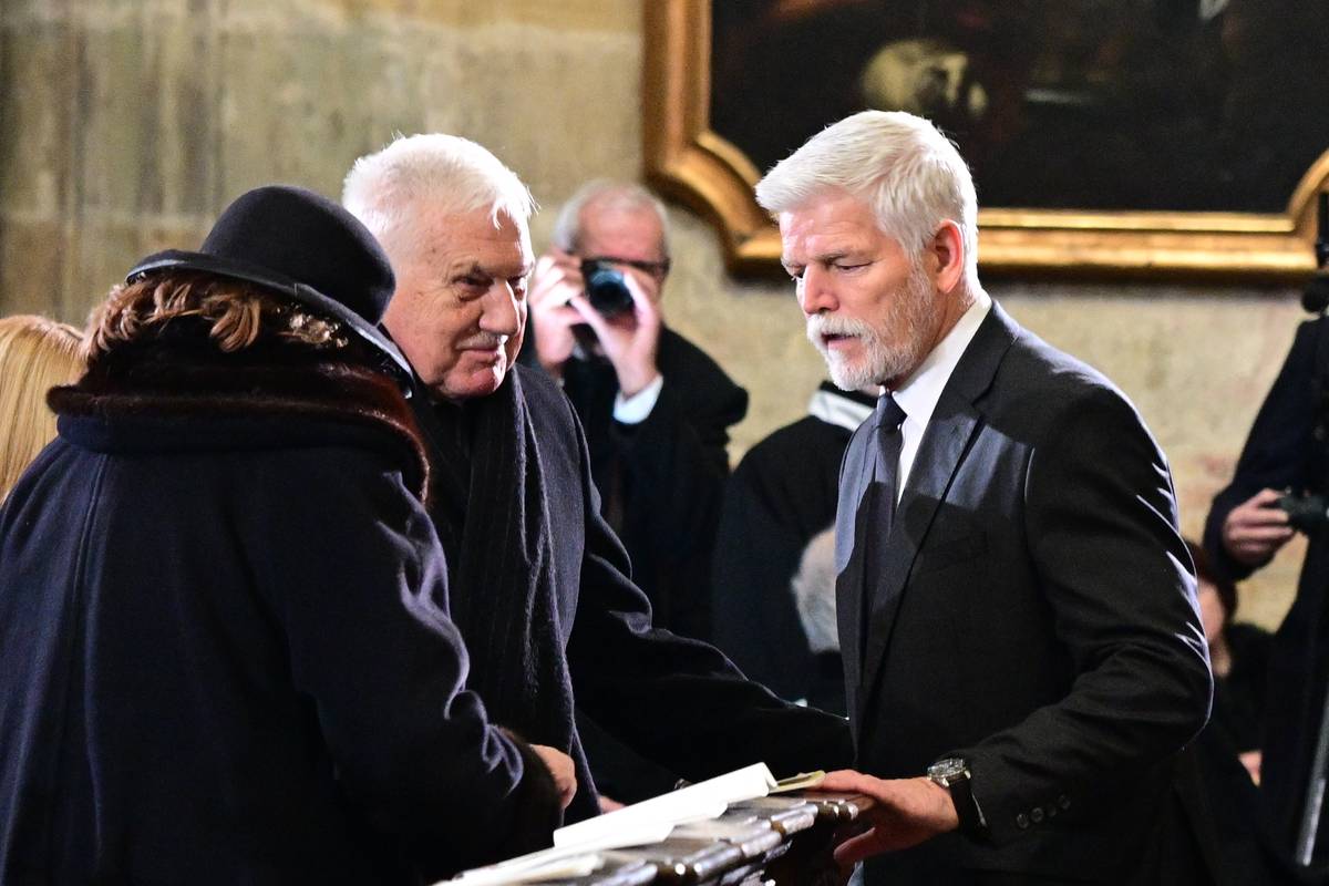Uvnitř chrámu se pozdravil s Václavem Klausem a Livií Klausovou.