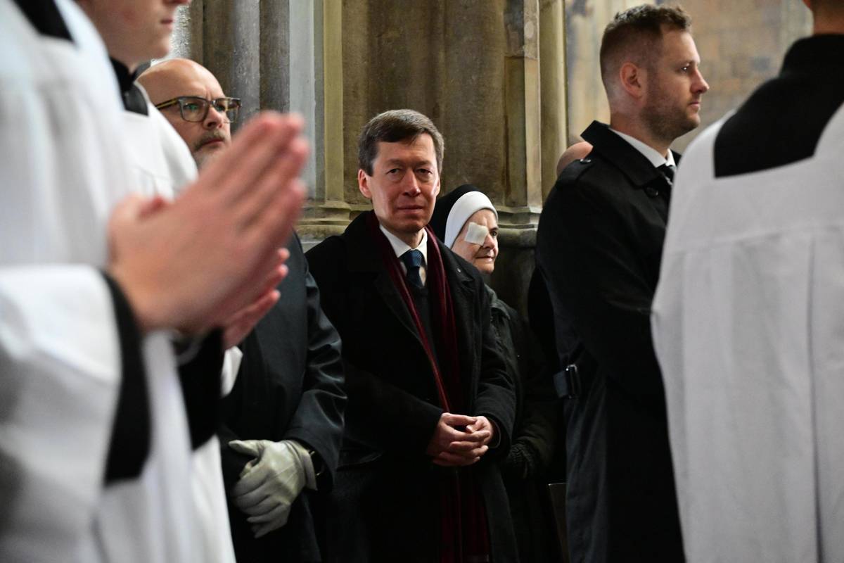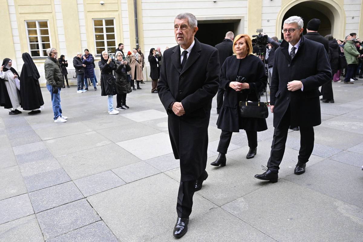 Pohřbu se zúčastnila řada předních politiků, mezi nimi ministryně obrany v demisi Jana Černochová (vlevo) nebo nově zvolený předseda Sněmovny Tomio Okamura.