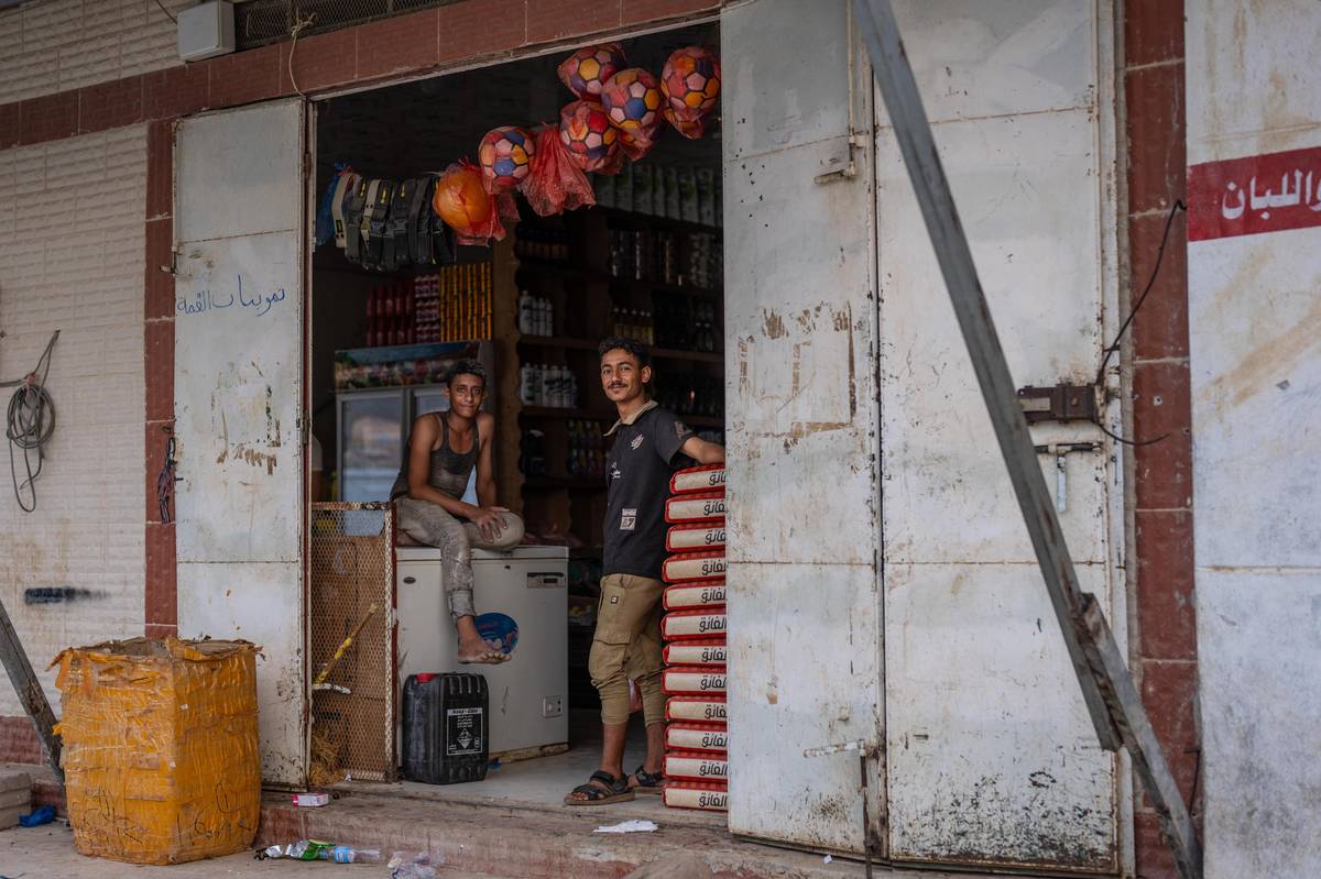 Muži vyhlíží zákazníky v obchodě v hlavním městě Hadibu, 16. října.