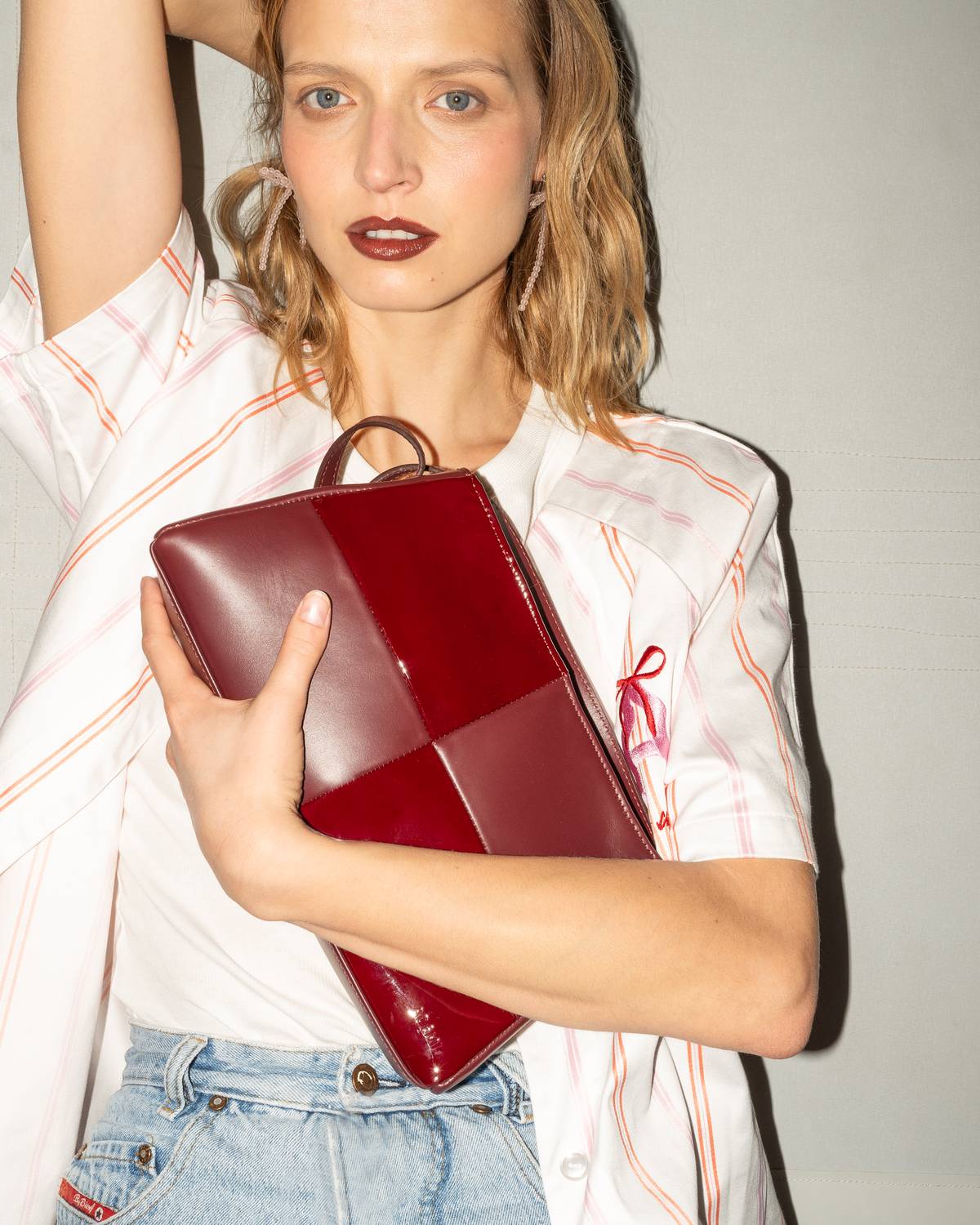 Elizaveta Maximová je tváří kožených kabelek značky PBG Studio. Clutch mini zakoupíte za 6500 Kč.