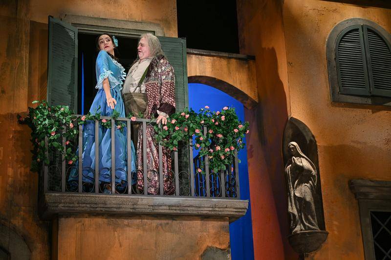 Schovanka Rosina v podání Světlany Janotové se svým poručníkem Bartholem (Milan Němec) na balkoně jeho domu