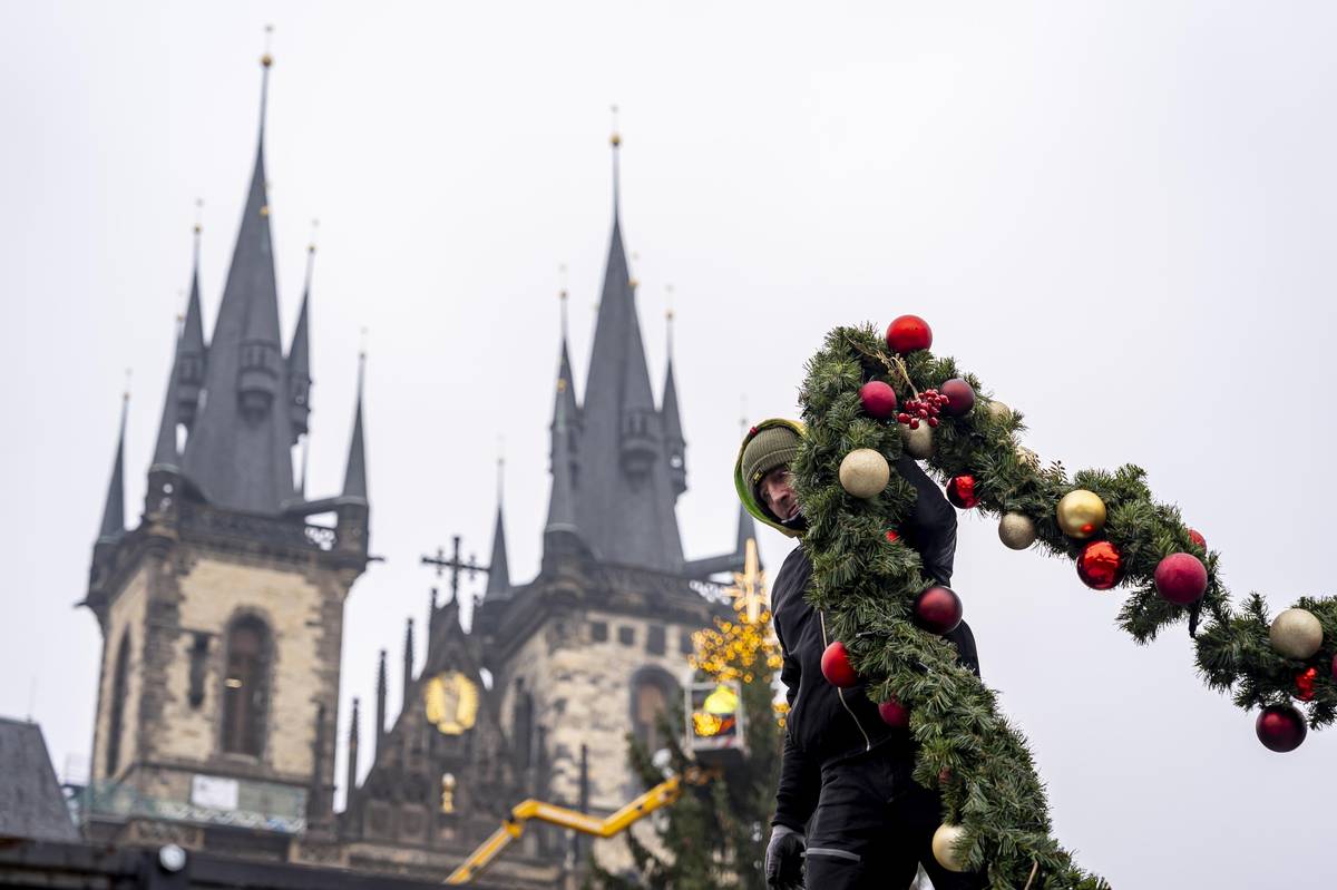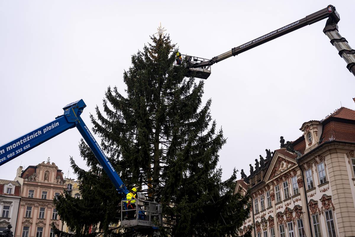 Strom byl vztyčen na Staroměstském náměstí v úterý nad ránem a zdobení začalo téměř okamžitě. Jako první se umístila hvězda na špici.
