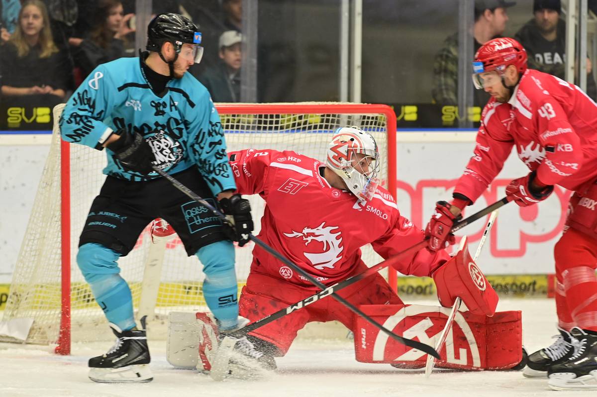 Domácí brankář Dominik Frodl do utkání nastoupil i se speciální helmou a betony