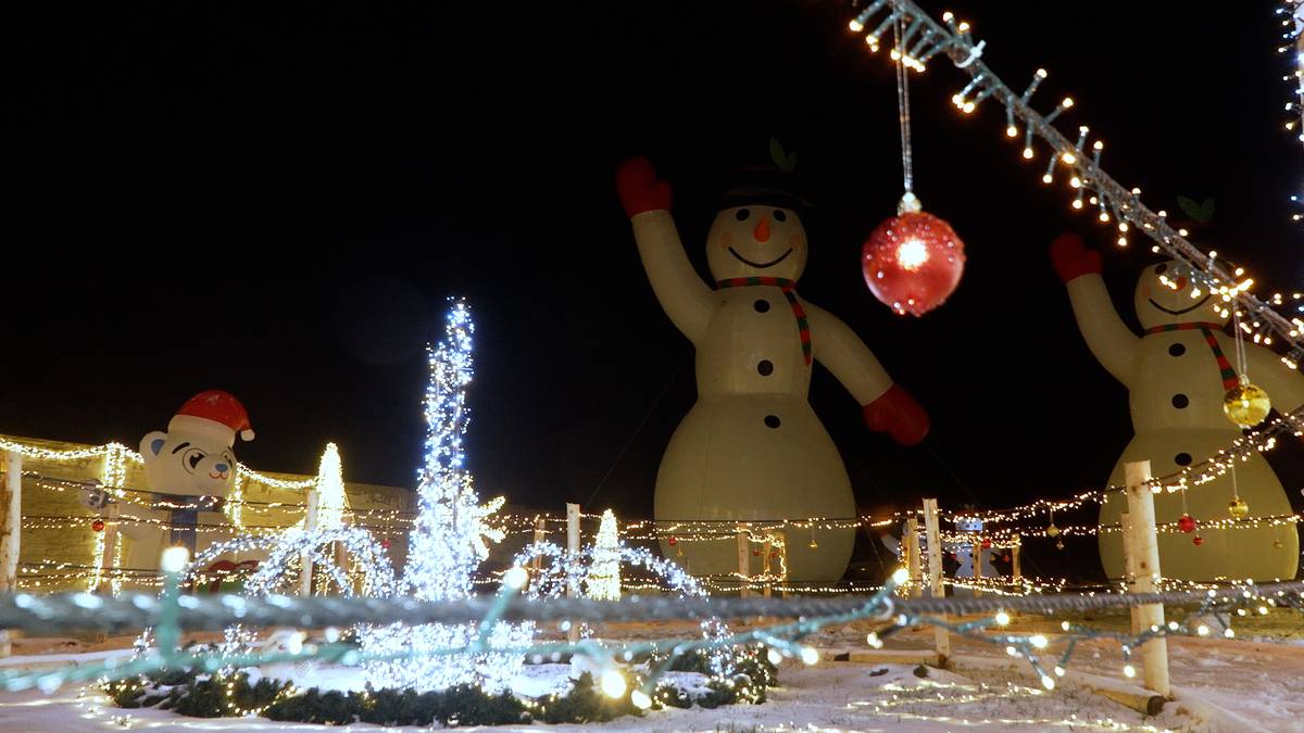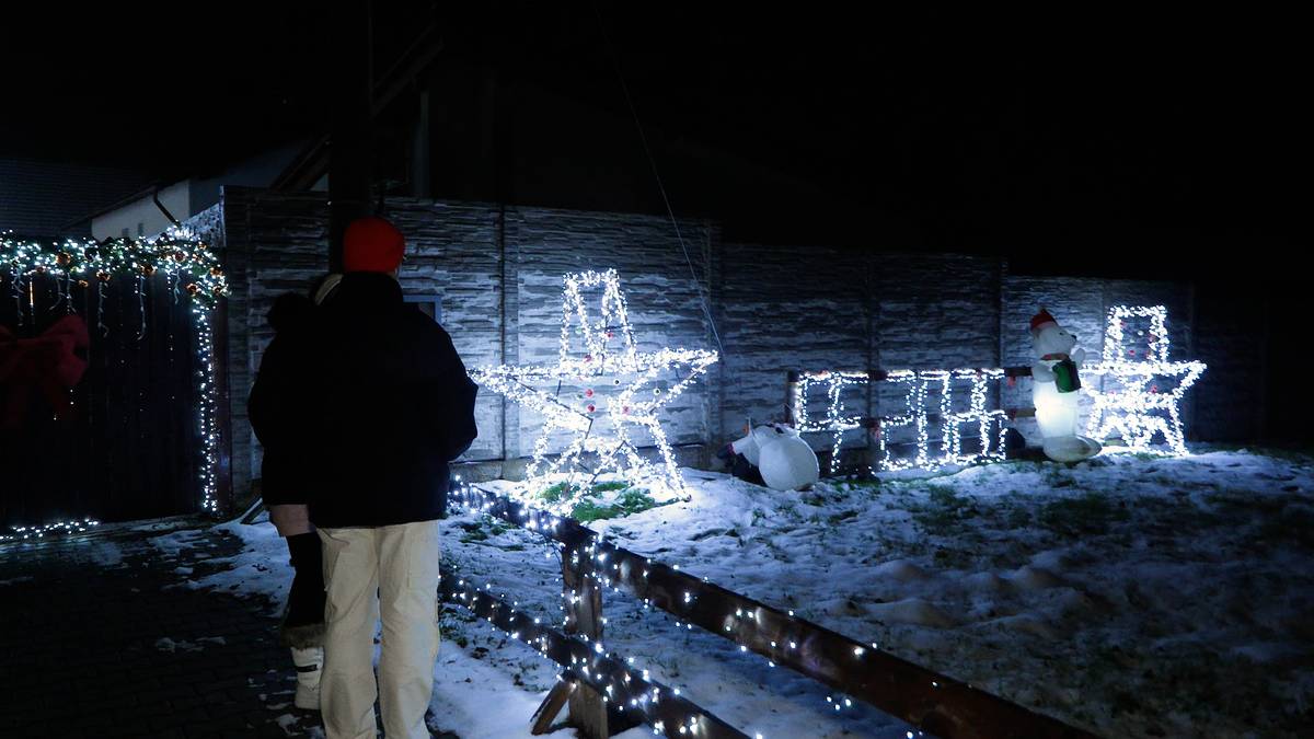 Letošní novinkou je prostor zahrady za stodolou. Zadní část osvětluje teplá bíla a doplňují ji sněhuláci a další nafukovací zvířata.