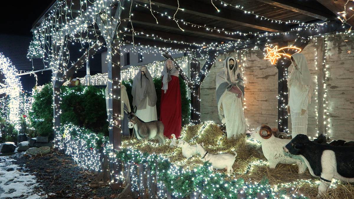 U vchodu uvítá návštěvníky osvětlený betlém.