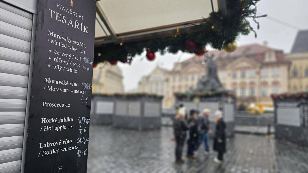 Tři druhy svařáku na jednom z vánočních stánků na Staroměstském náměstí.