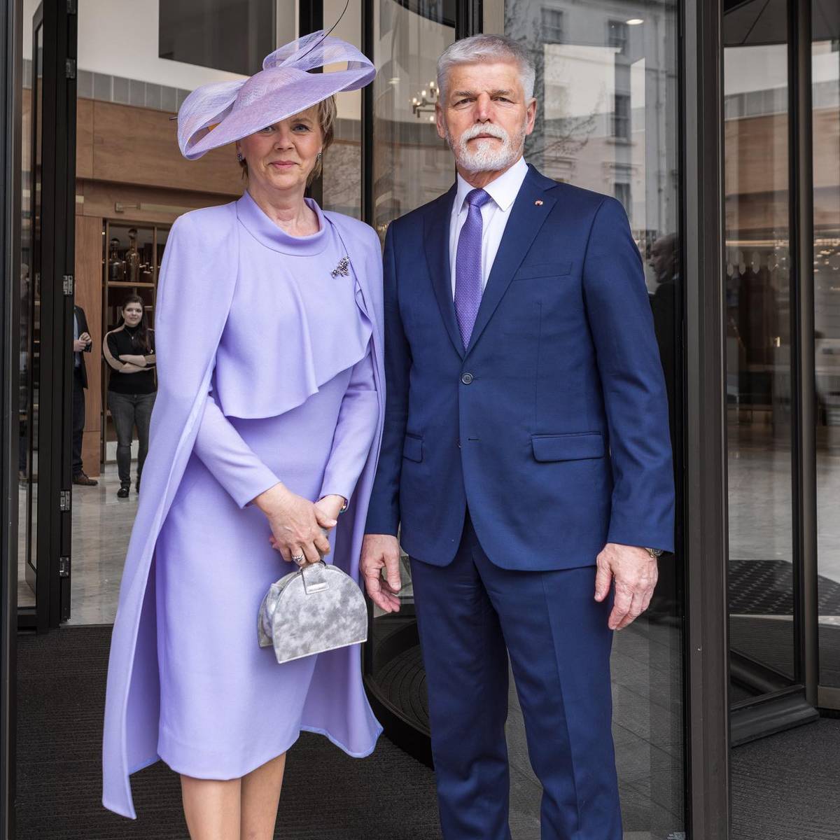 Květen 2023. Na samotnou korunovaci si Eva Pavlová oblékla lila šaty s pelerínou, které navrhla Beata Rajská. Elegantní klobouk, který na takové akci nemohl chybět, vyrobila modistka Jolana Kotábová, brož vytvořil Michal Kadaník. A kabelka? Ta je také česká. Pochází od značky Elega