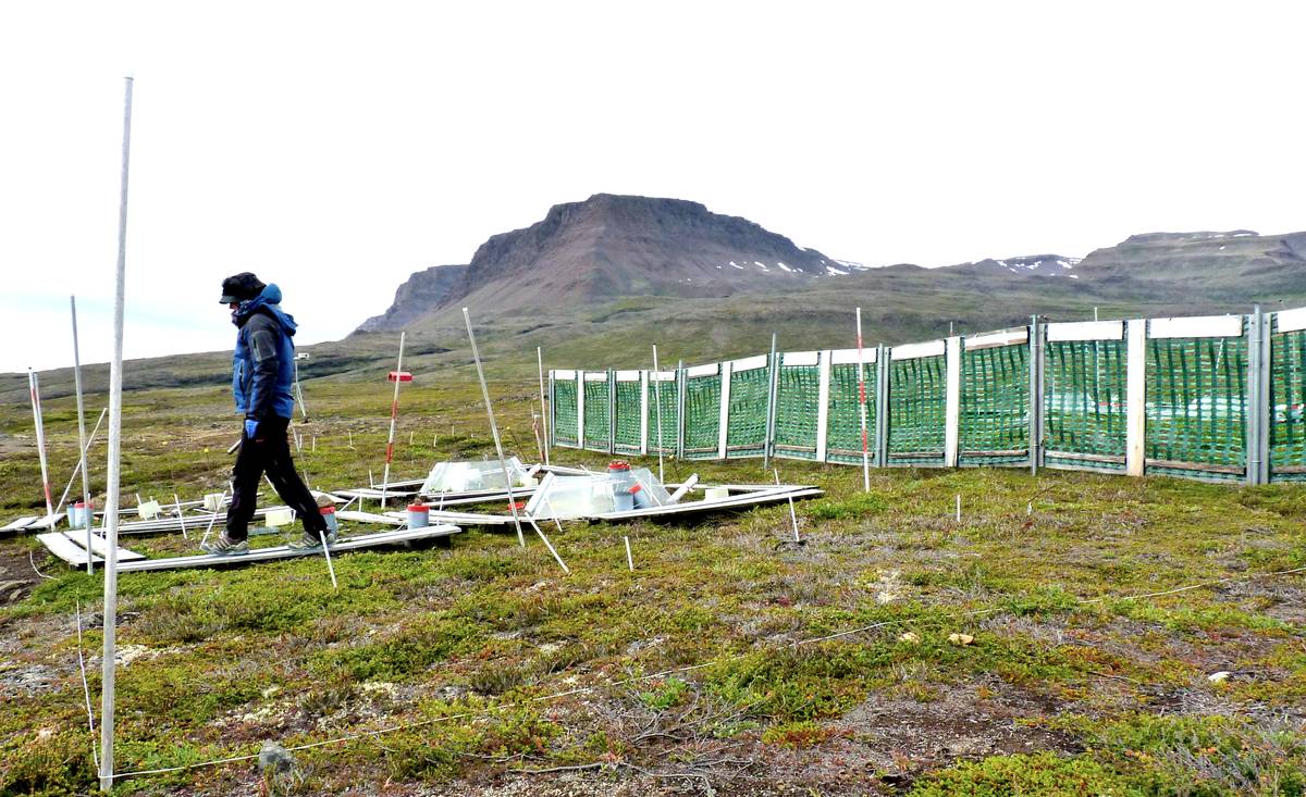 Odběry vzorků z experimentálních ploch pro výzkum vlivu klimatických změn na arktické mikroorganismy.