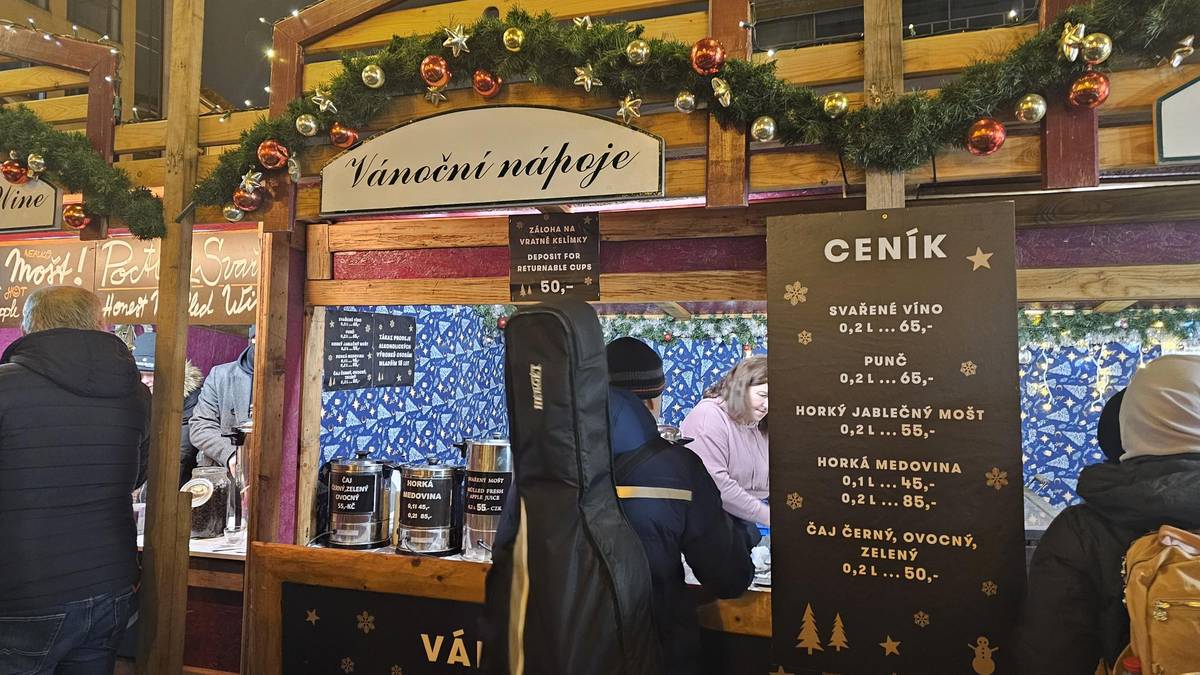 Vánoční trhy před Palladiem, svařák je tu za 90 korun.