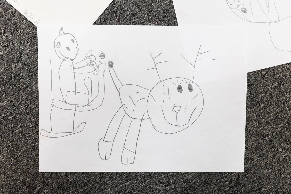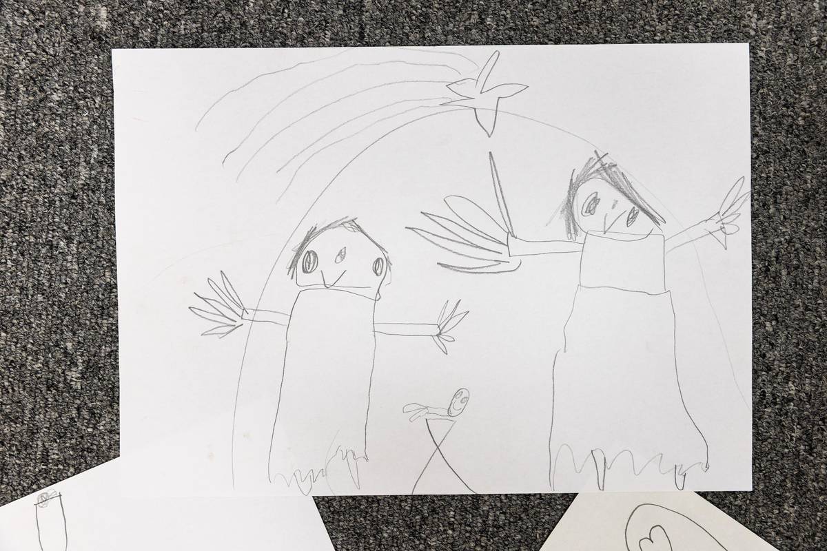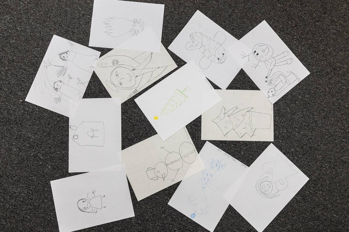 Vybrané návrhy dětí z mateřských školek, ze kterých bylo osvětlení vyrobeno. Dětem bylo čtyři až pět roků, když obrázky kreslily.