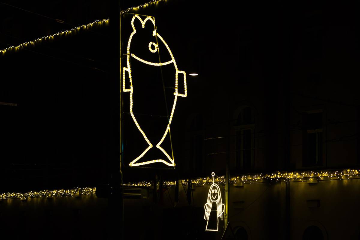 Vánoční osvětlení z dětských návrhů můžete najít v ulici Seifertova u zastávky Viktoria Žižkov.