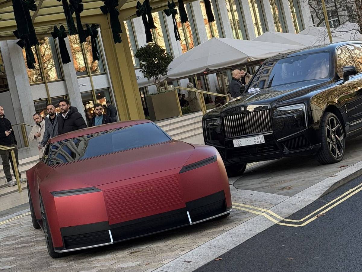 Vizualizace Jaguaru Type 00 v červené barvě a SS Jaguar