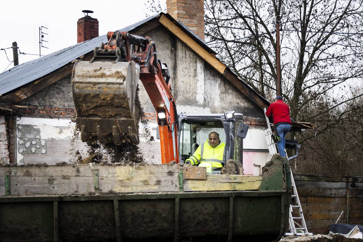 Na snímku poslední dům v aktuální demoliční vlně jehož demolice započala dnes asi v 6:30 ráno.