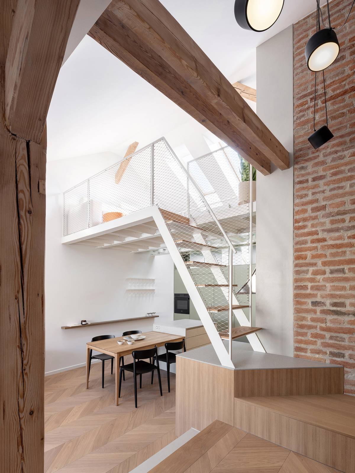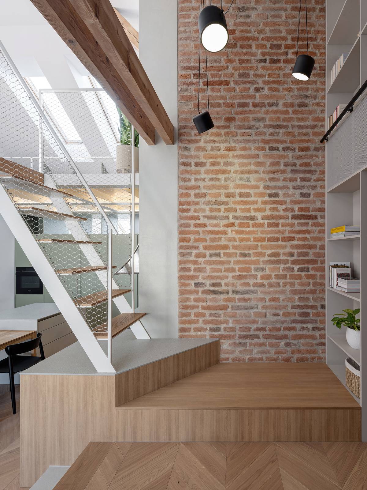 Vestavěné patro slouží jako odpočinková i pracovní zóna.