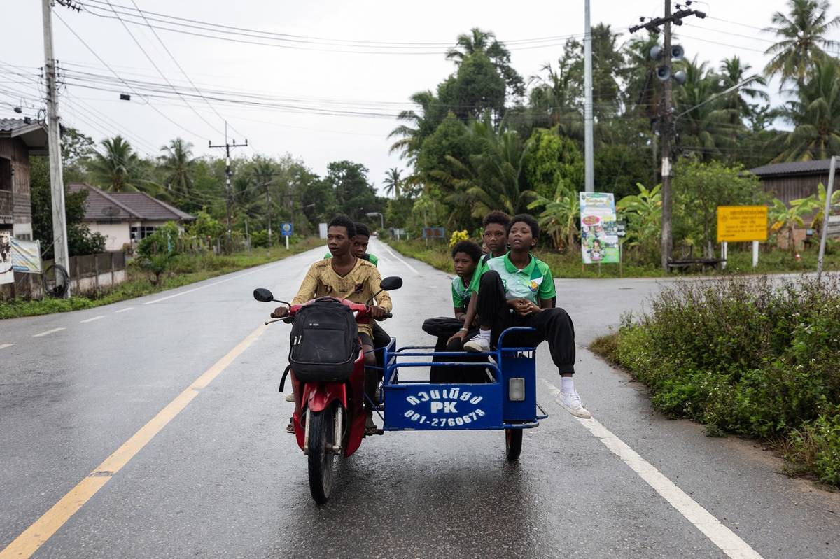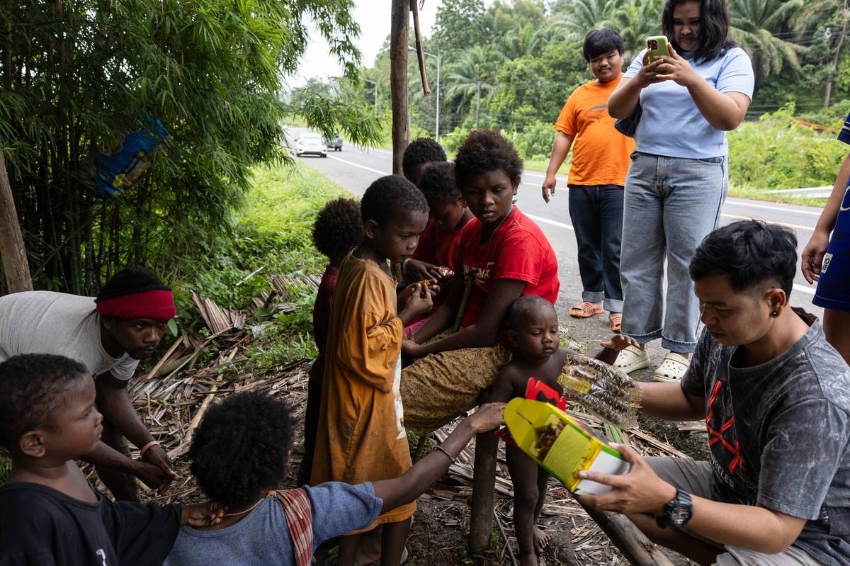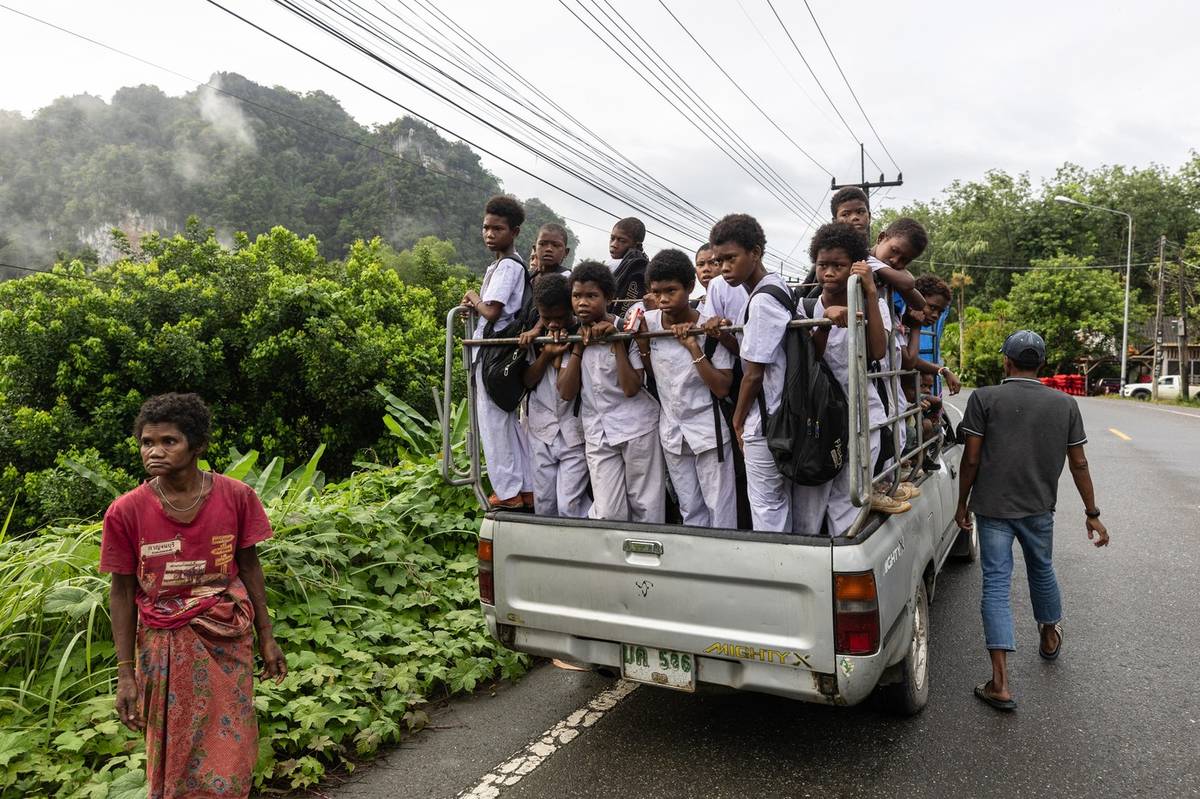 Většina z nich opustila kočovný způsob života svých předků a usadila se na okrajích lesů. (Cesta do místní školy v thajské vesnici poblíž lesního tábora Maniqů v Phatthalungu v jižním Thajsku, zveřejněno 30. října.)