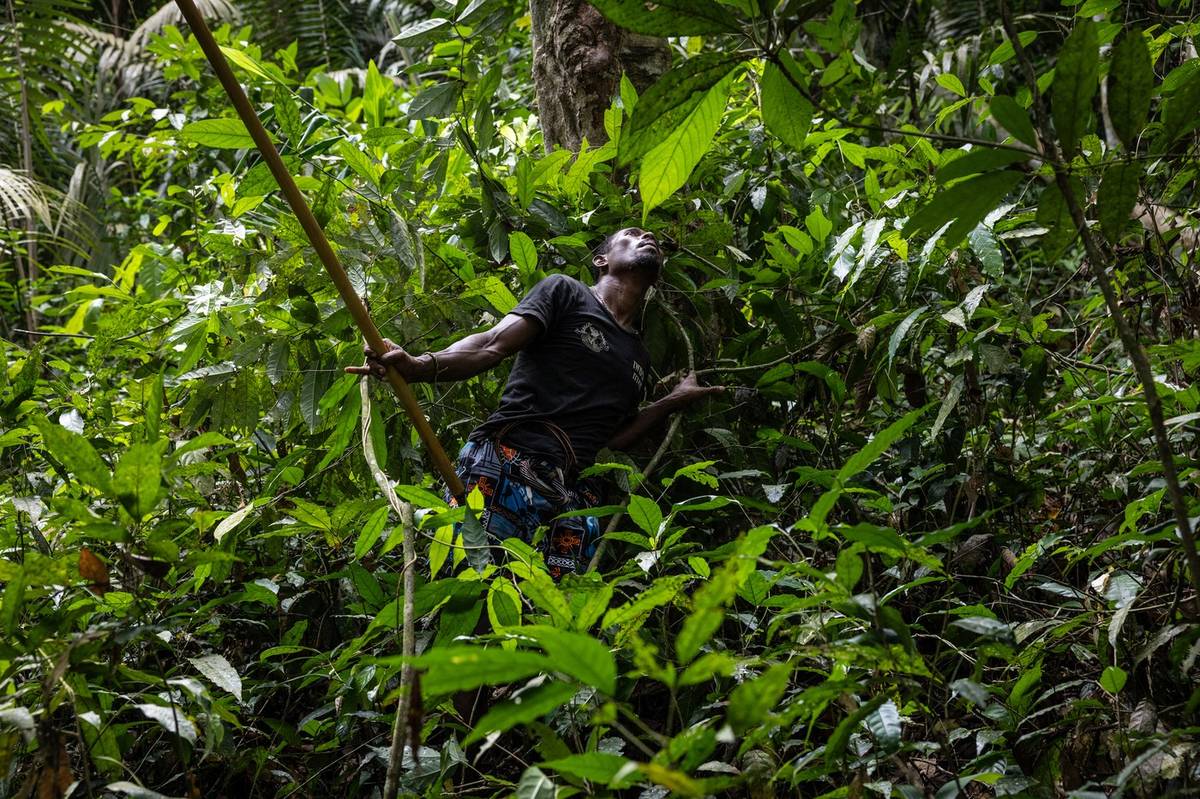 Hluboko v thajském lese sprintuje podrostem mladý muž s foukačkou v ruce, než vystřelí otrávený šíp na opici. Skupina se přiblíží, křičí na sebe a zvíře padá na zem. (Muž z kmene Maniq honí opici, kterou zahlédl v korunách stromů v Phatthalungu v jižním Thajsku, zveřejněno 30. října.)