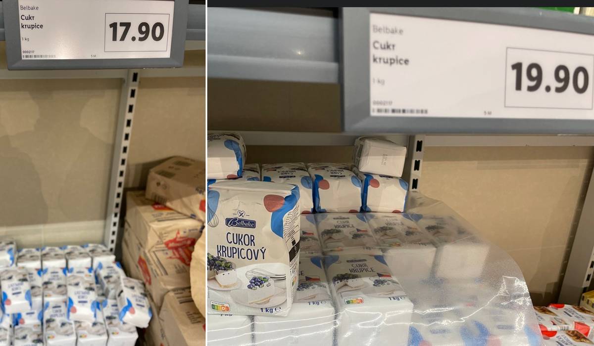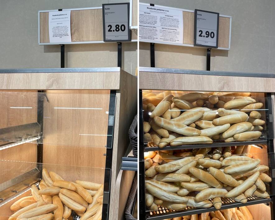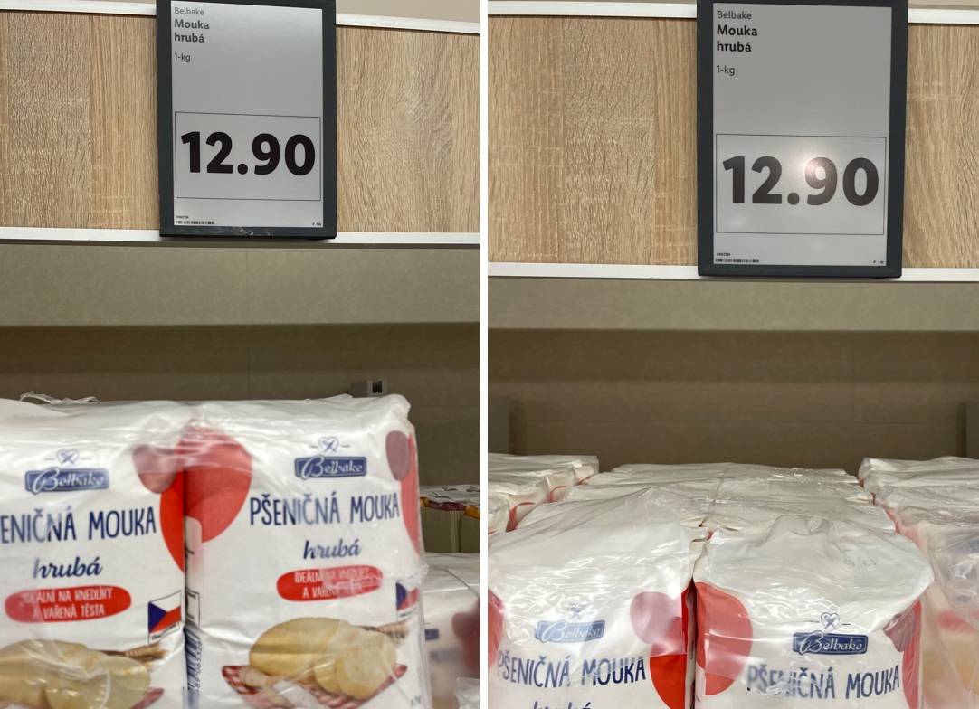 Prodejna Lidl v Poděbradech. Srovnání z 11. února a 8. prosince 2025.