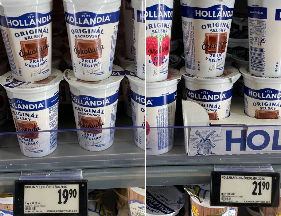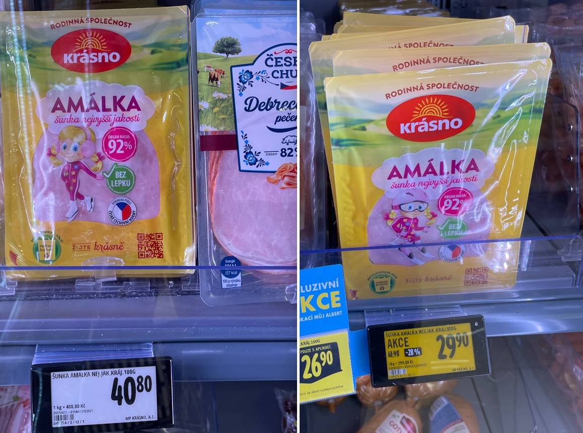 Prodejna Albert v Poděbradech. Srovnání z 11. února a 8. prosince 2025.