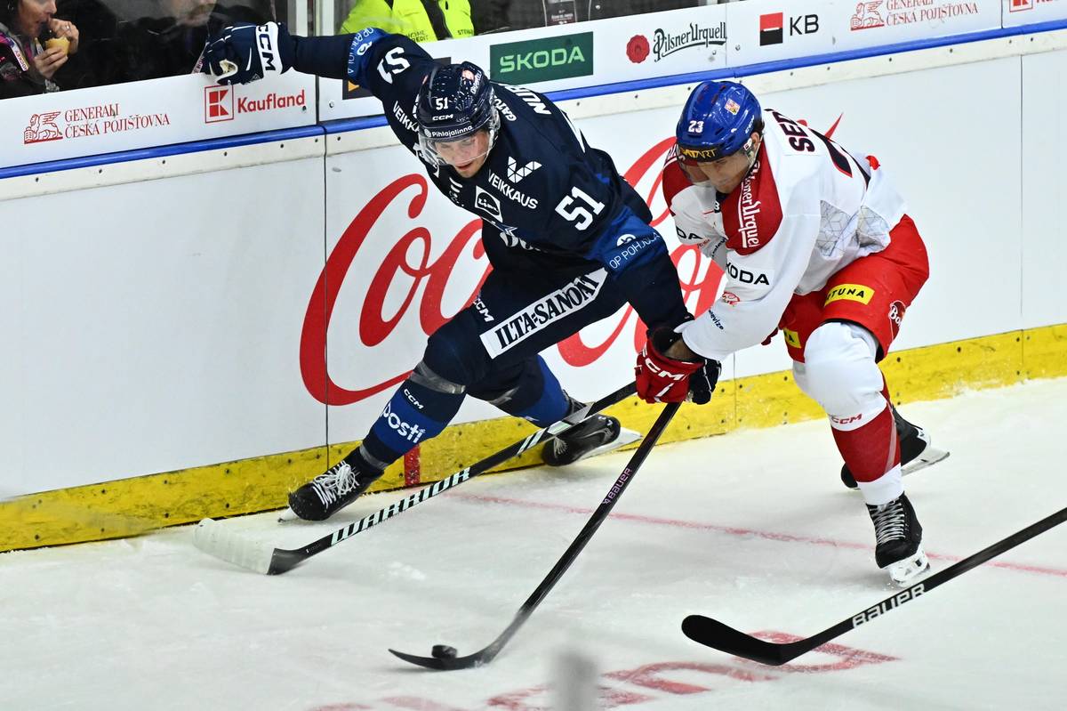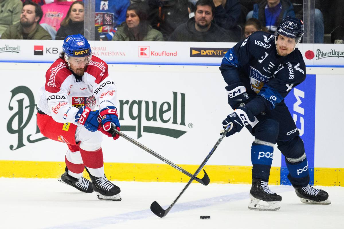 Daniel Voženílek a Mikko Lehtonen v souboji o puk