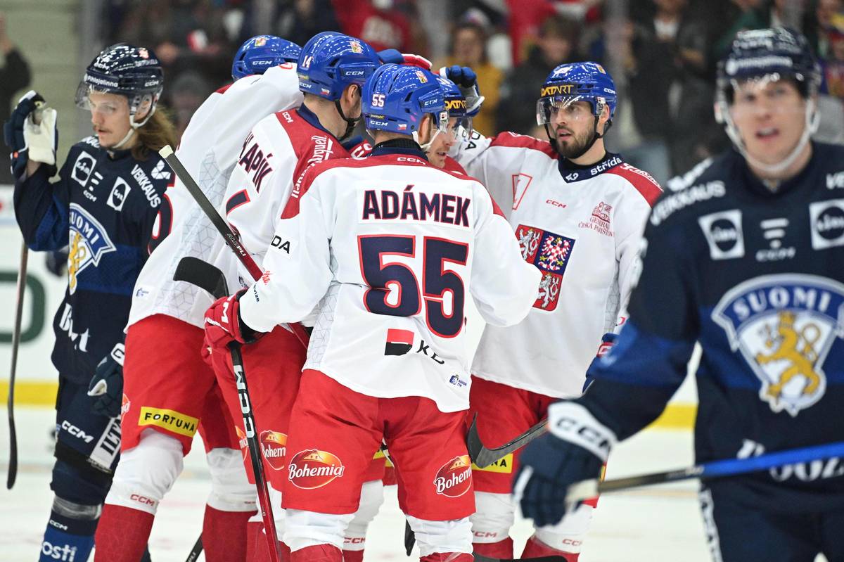 Český tým slaví výhru nad Finskem