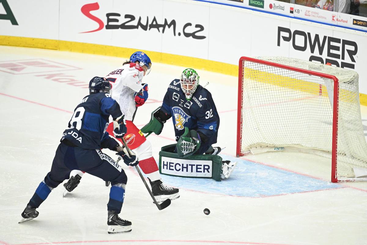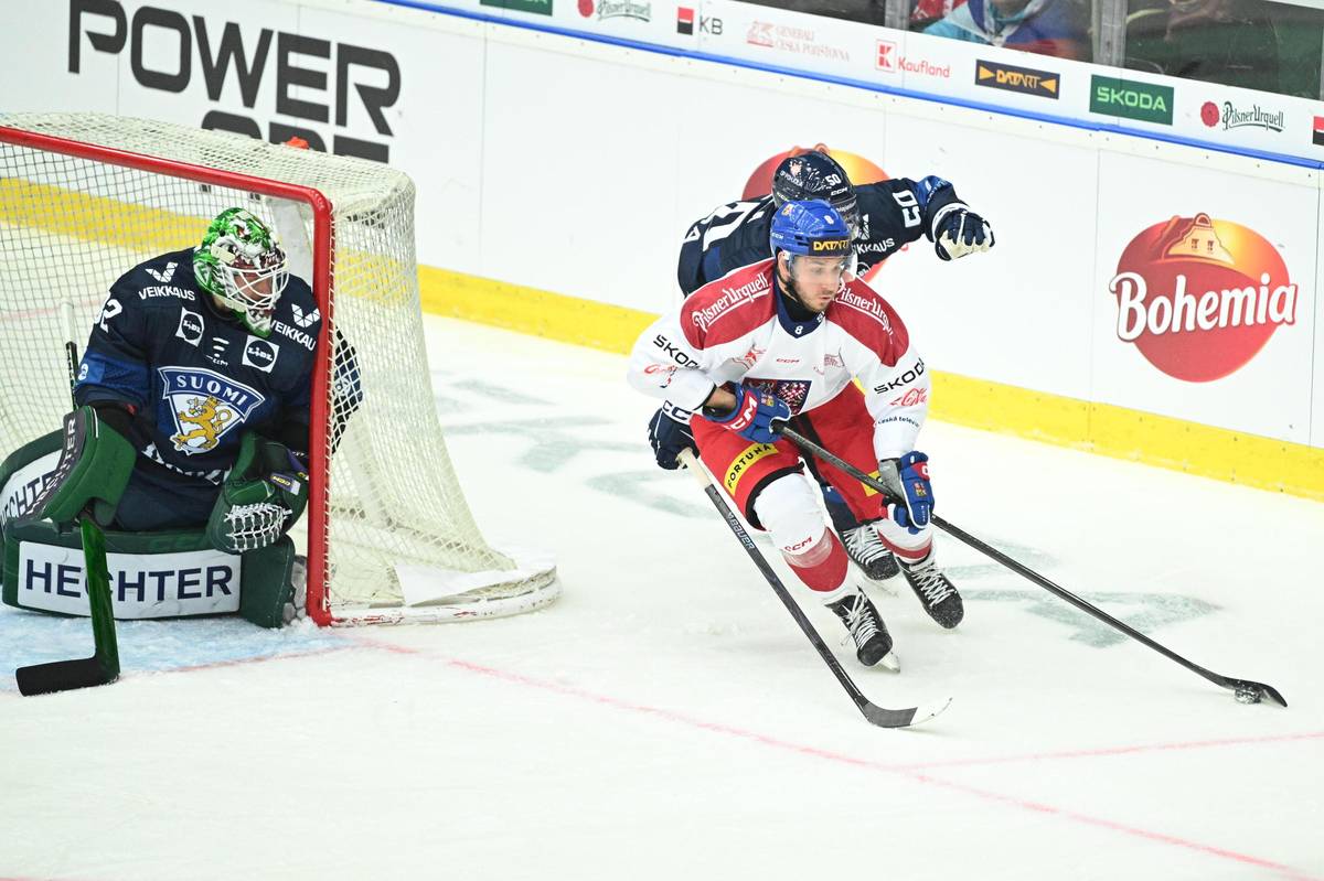 Daniel Voženílek před finskou brankou