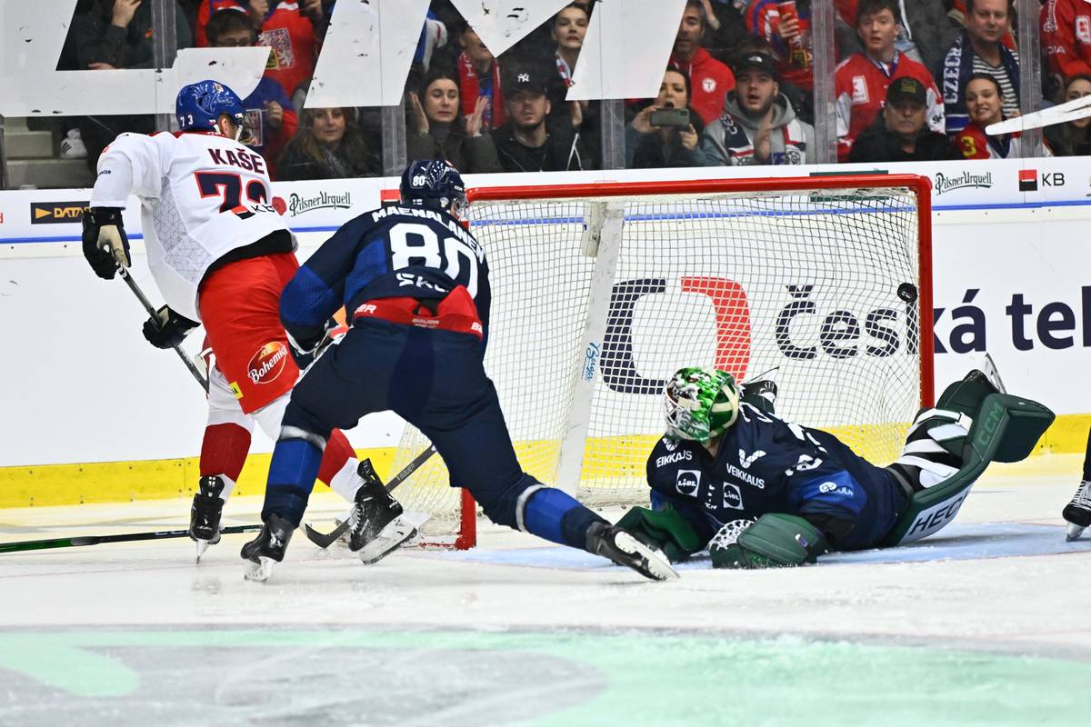 Ondřej Kaše překonává finského gólmana