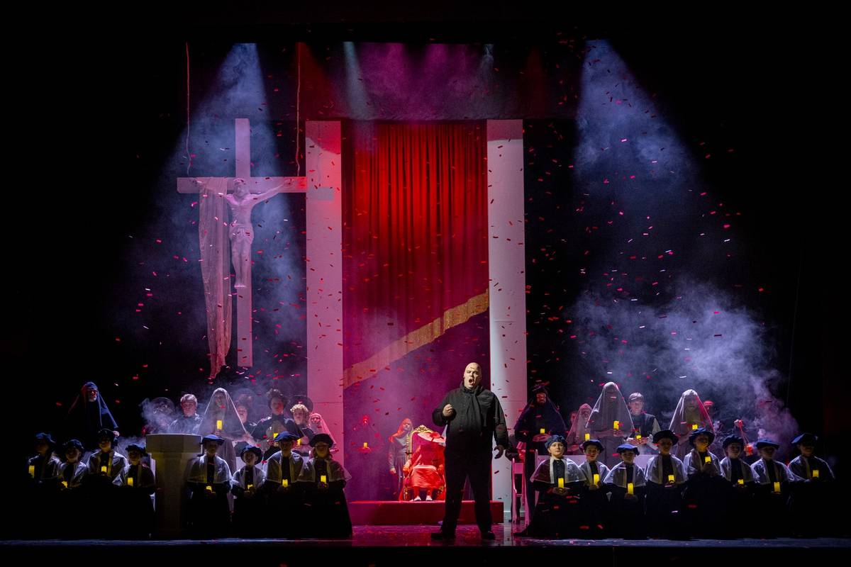 Joseph Gansert jako baron Scarpia a Lívia Obručník Vénosová v roli Toscy.