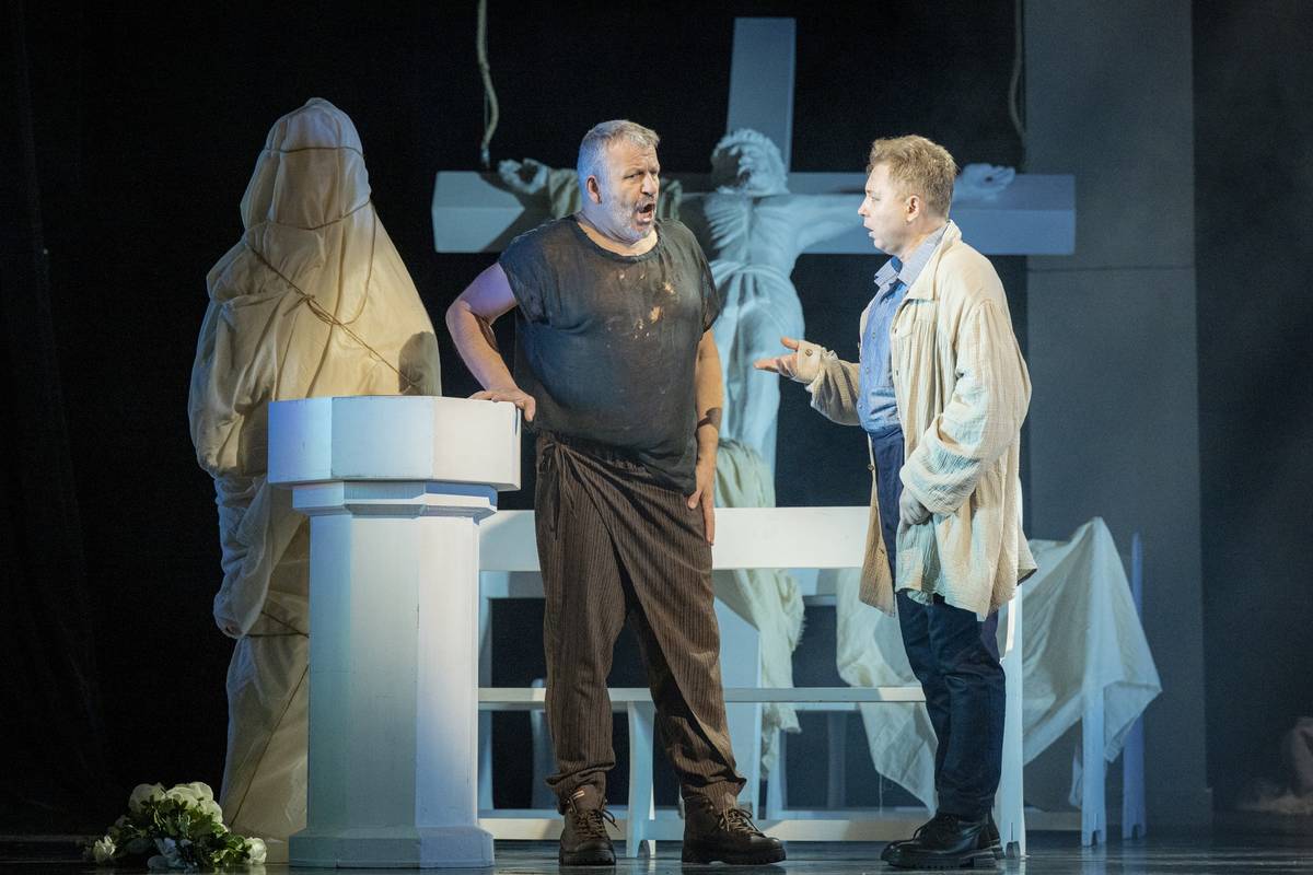 Jiří Sulženko jako kostelník a Joseph Gansert v roli barona Scarpii.
