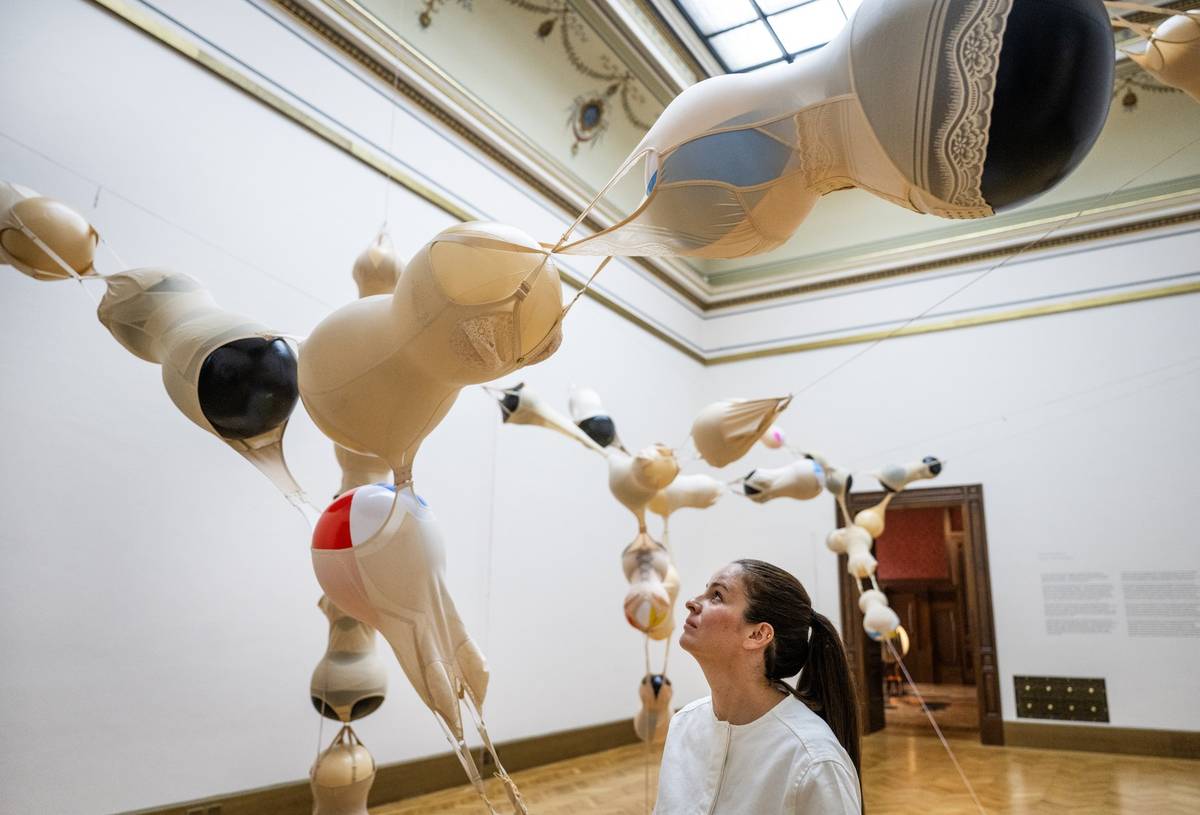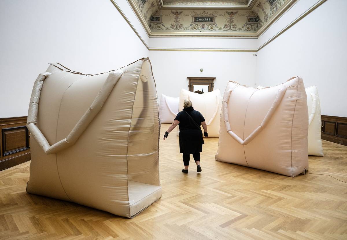 Nejtypičtější pro rukopis Kateřiny Vincourové jsou obří kabelky z nafouknuté plachtoviny. Dílo se jmenuje The Bagrooms.