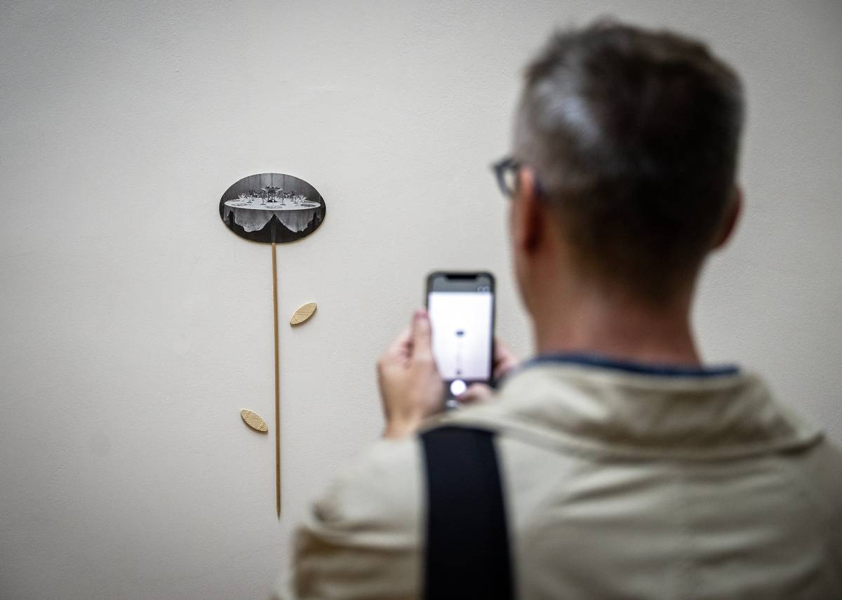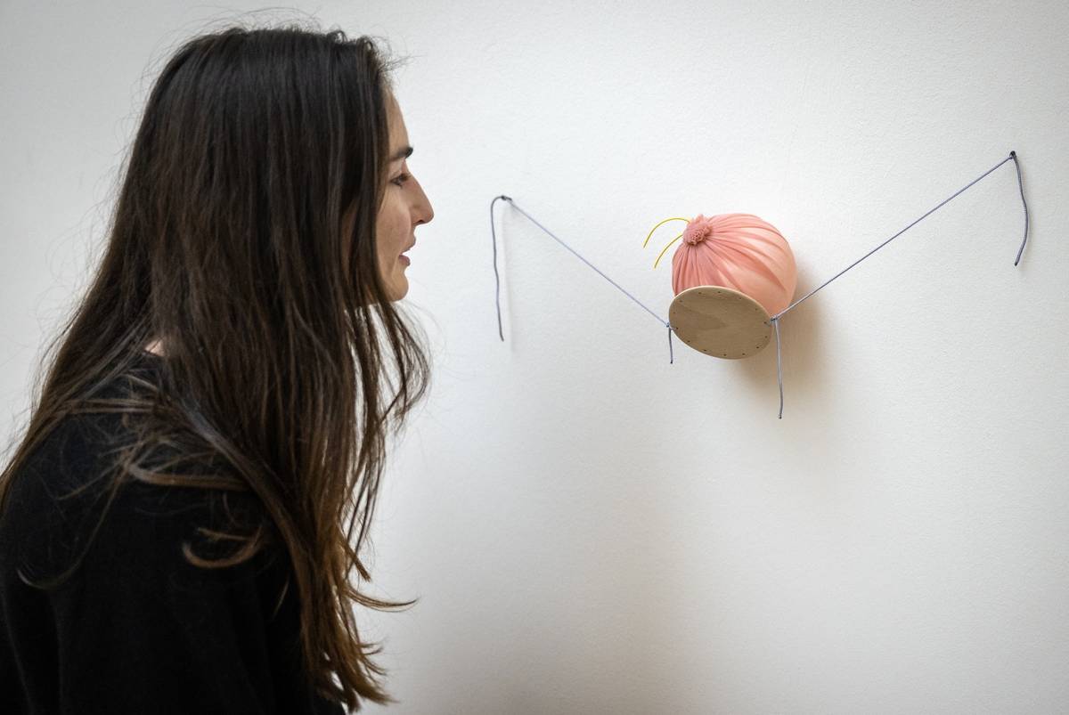 Na fotografii si návštěvnice prohlíží dílo Molekuly z roku 2006.