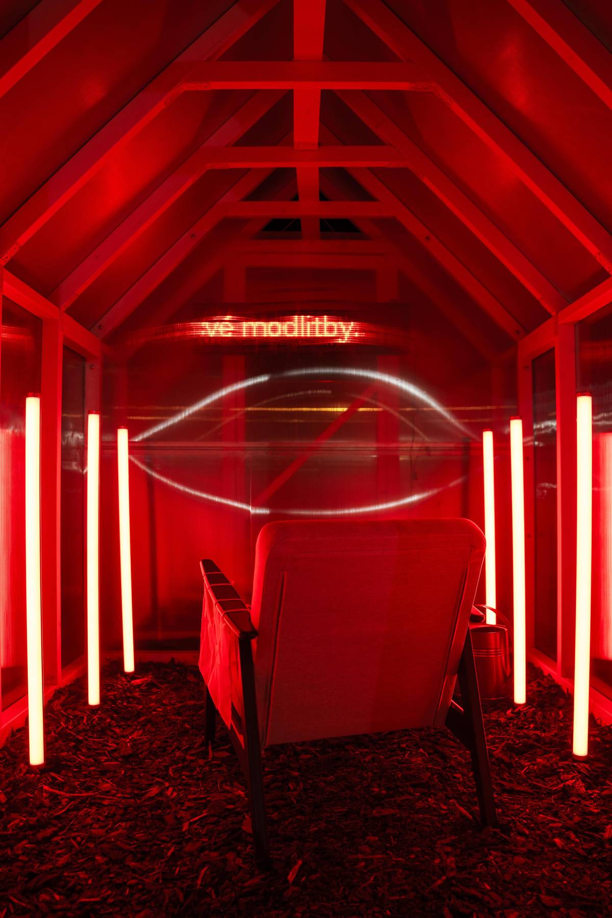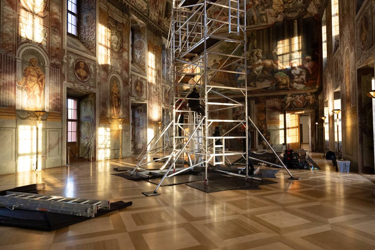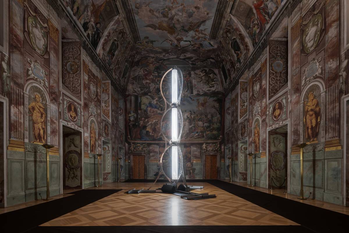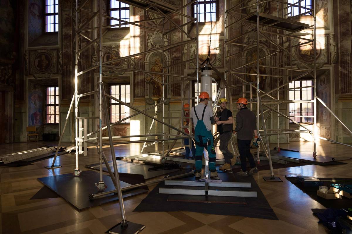 Instalace Audire Fluctus v hlavním barokním sále zámku