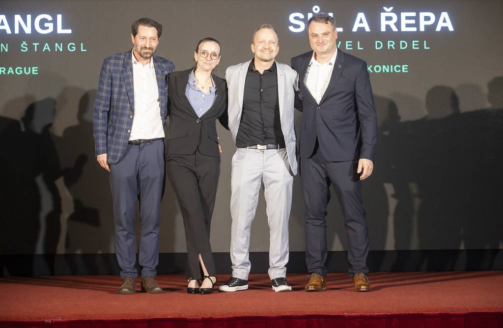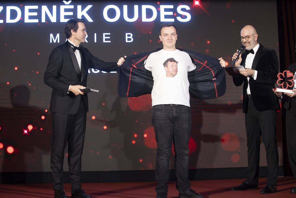 Sommeliérskou cenu si odnesl Zdeněk Oudes z Marie B. Na tričku má šéfkuchaře Oldřicha Sahajdáka.
